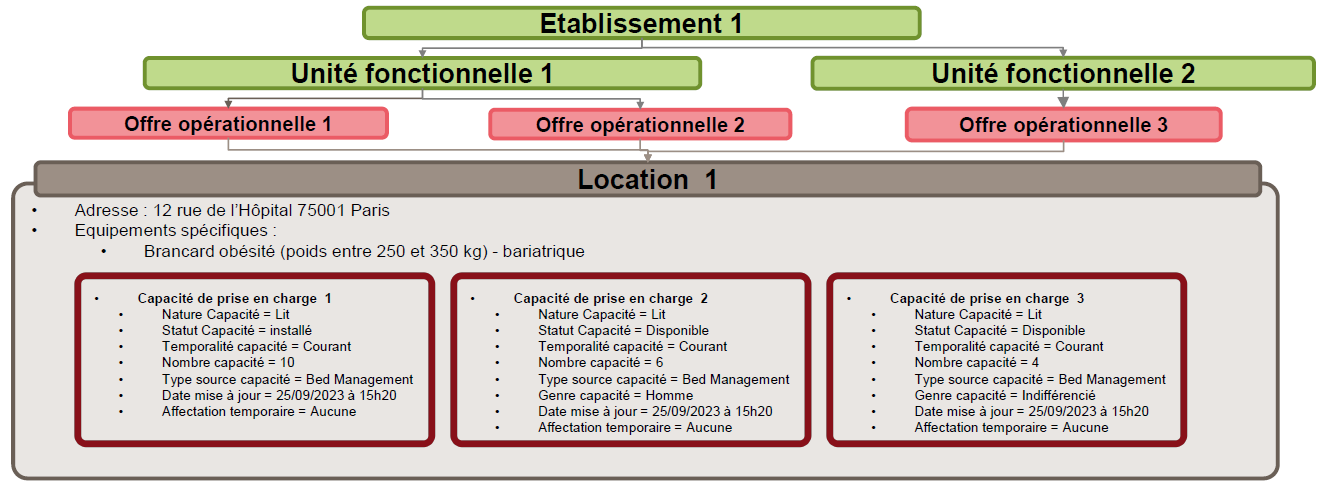 Description du scénario : Un établissement (via bed management, ...) ajoute dans un lieu de réalisation de l'offre existant dont l’identifiant est XXX, des données capacitaires pour une affectation temporaire : une affectation temporaire "Covid +", 2 lits disponibles (sexe indifférencié), à t0.